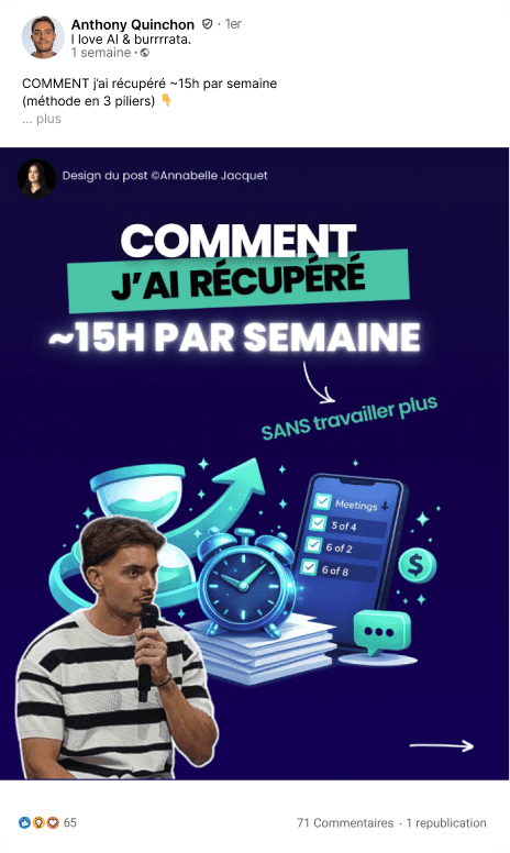 J’ai bossé avec Annabelle pendant 3 mois sur la création et la publication de mes posts LinkedIn, et franchement, c'était juste top.